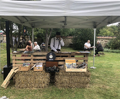 Parmi un large choix de disque vinyles 45 et 33 T, vos convives farfouillent et choisissent leur titre préféré ou pour une personne de son choix sous forme de dédicace,.